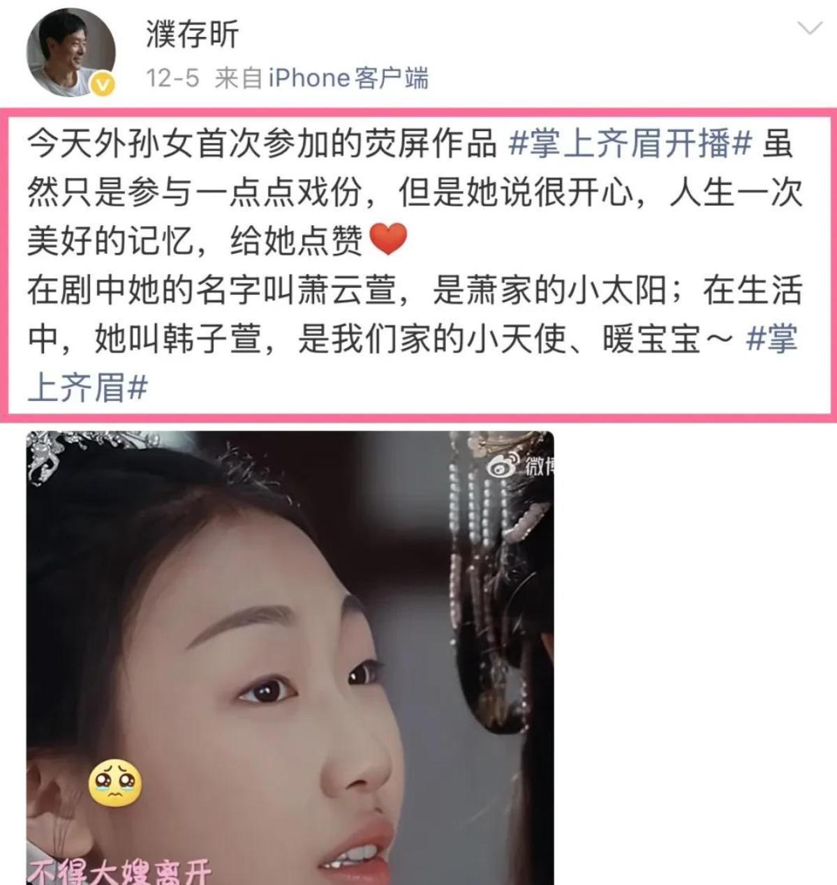 他为了支持11岁的外孙女韩子萱第一次拍戏,在社交媒体上连发三条动态,表达作为外公的骄傲。这本是一件很温馨的家庭小事,却在网上引发了巨大的争议。很多网友留言说“内娱完了”,甚至直接称韩子萱为“资本家的丑孩子”。